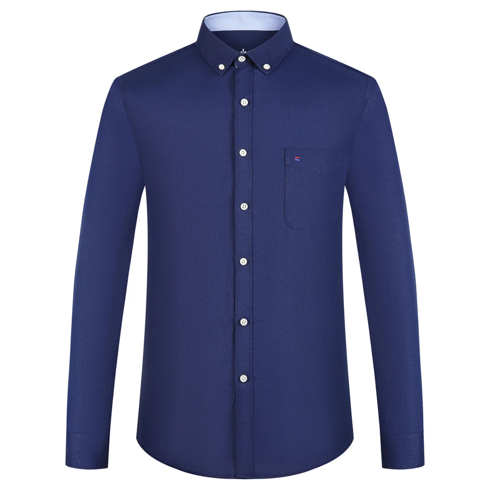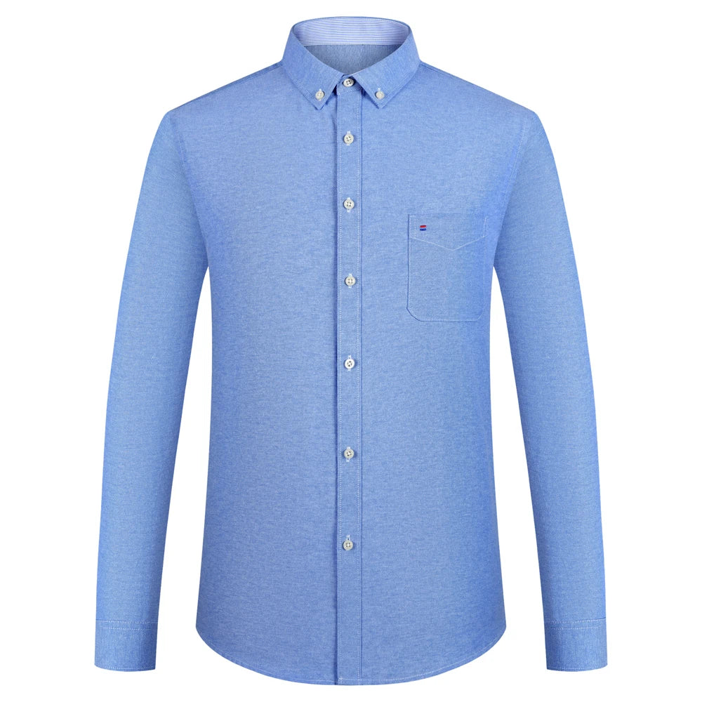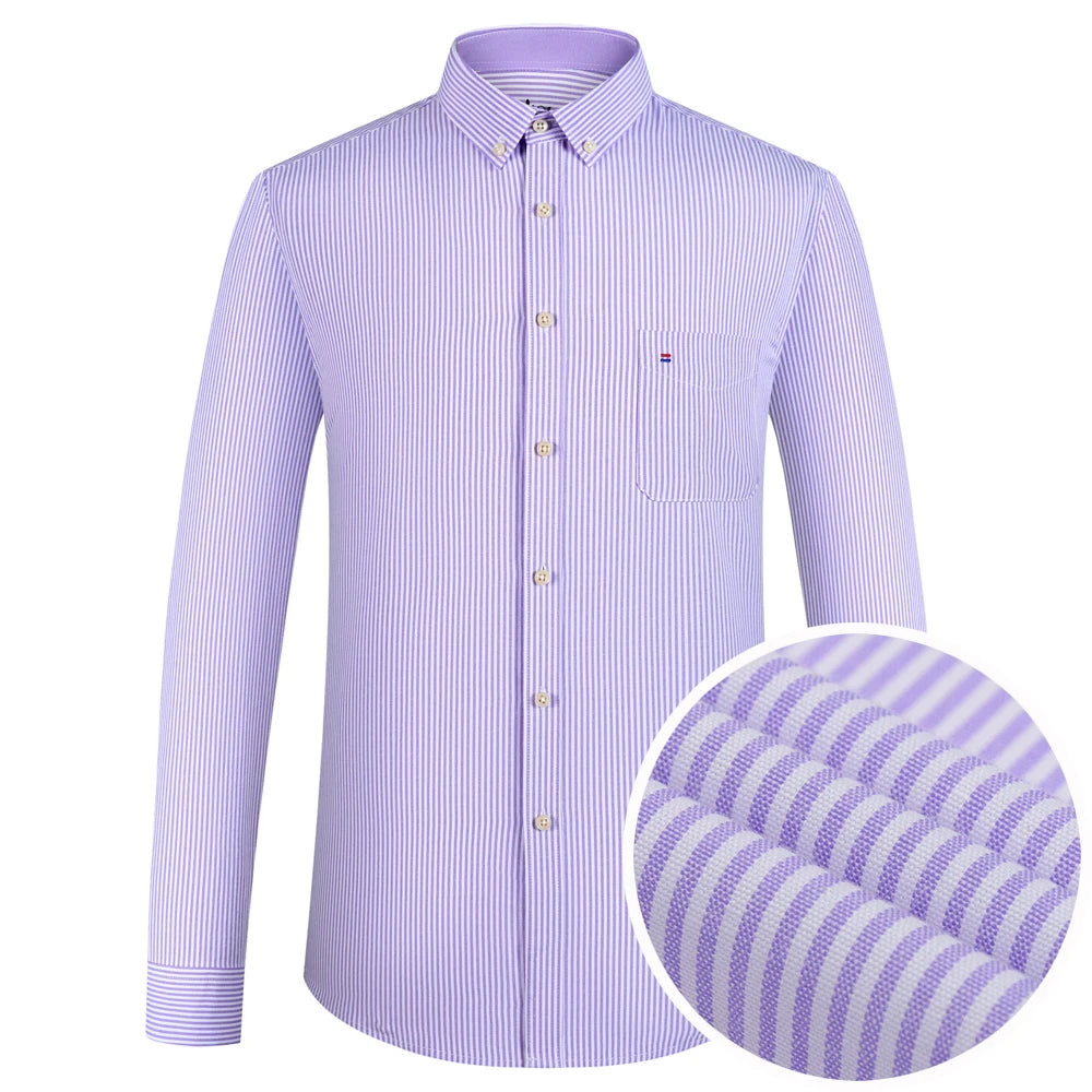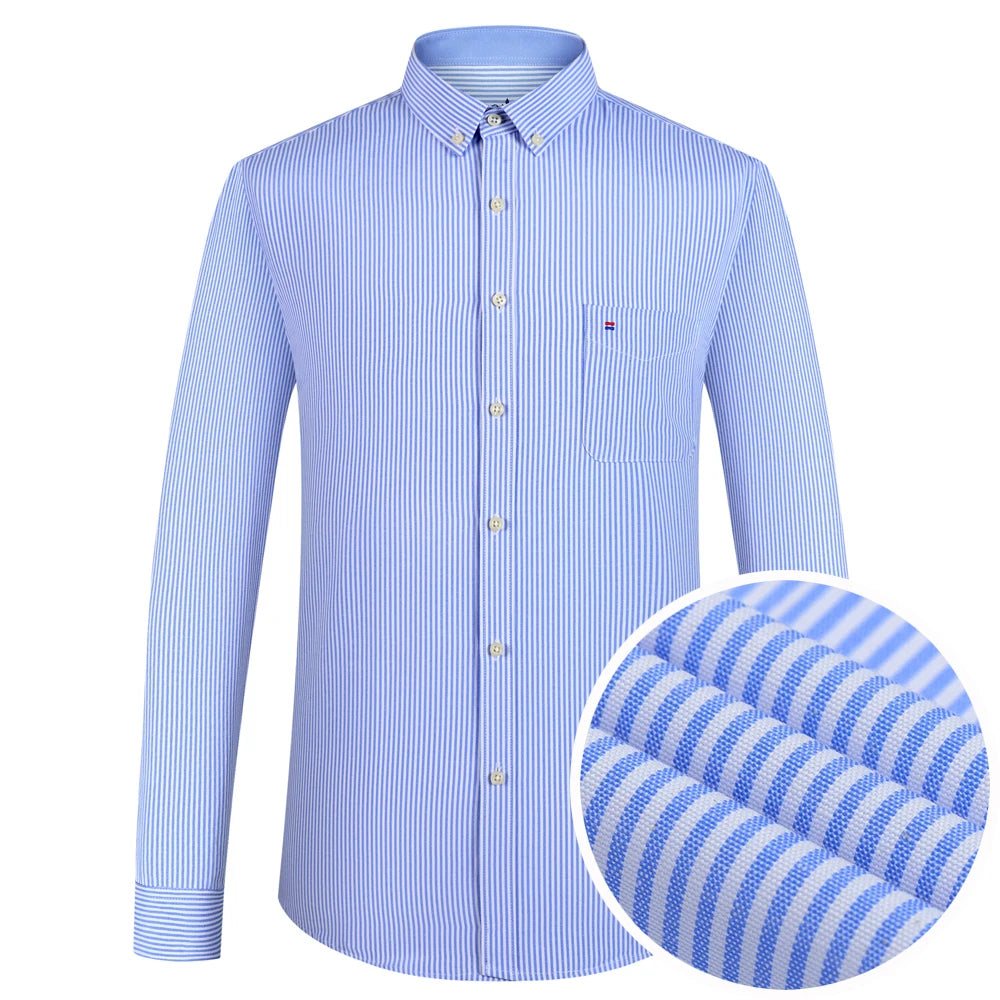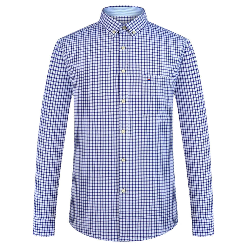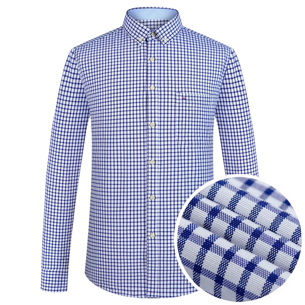 Men's Plaid Striped Oxford Long Sleeve Button-down Shirts with Pocket, Spring Fall 60% Cotton Versatile Casual Menswear Clothing