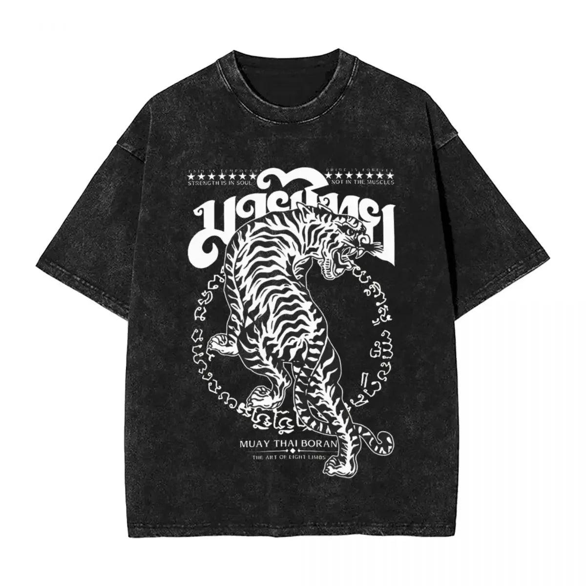 Mens T Shirt Muay Thai Boran Washed T Shirts Novelty Summer Tees Street Style Pattern Cotton Clothes Plus Size