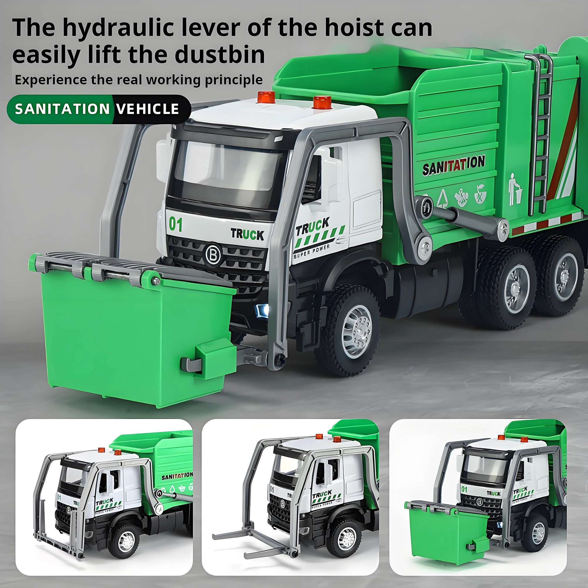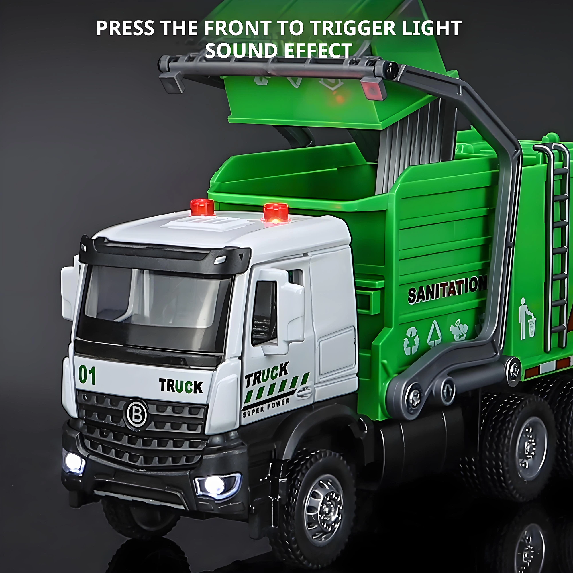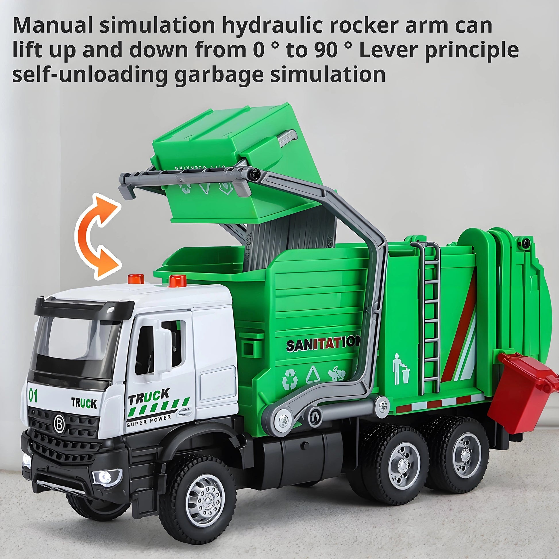 Alloy garbage truck toys, sanitation truck with lights and sounds, simulation recycling features, ideal gift for boys