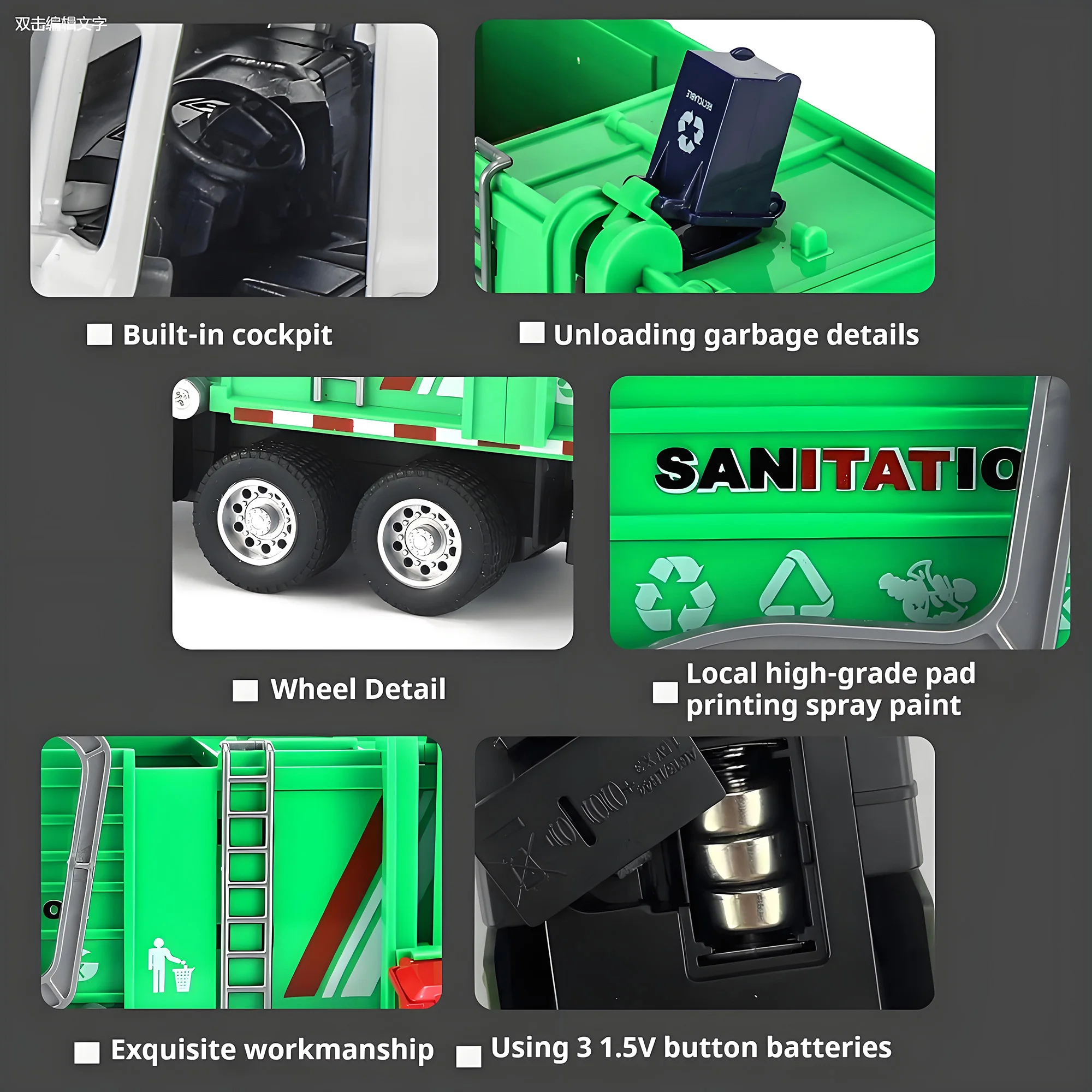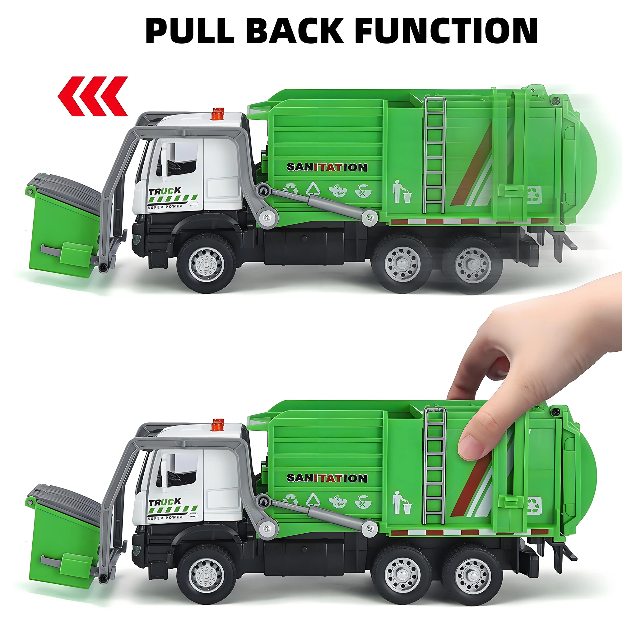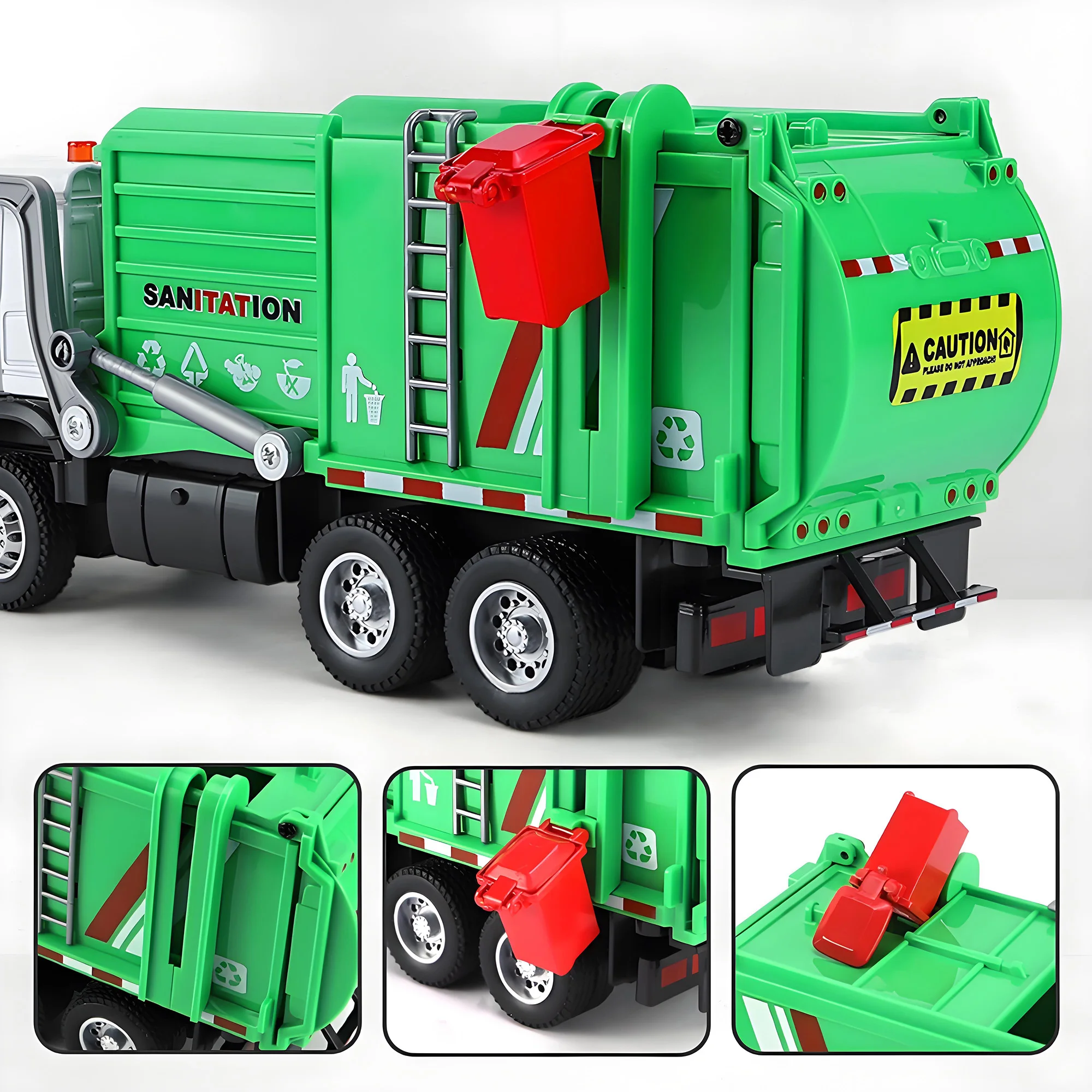 Alloy garbage truck toys, sanitation truck with lights and sounds, simulation recycling features, ideal gift for boys