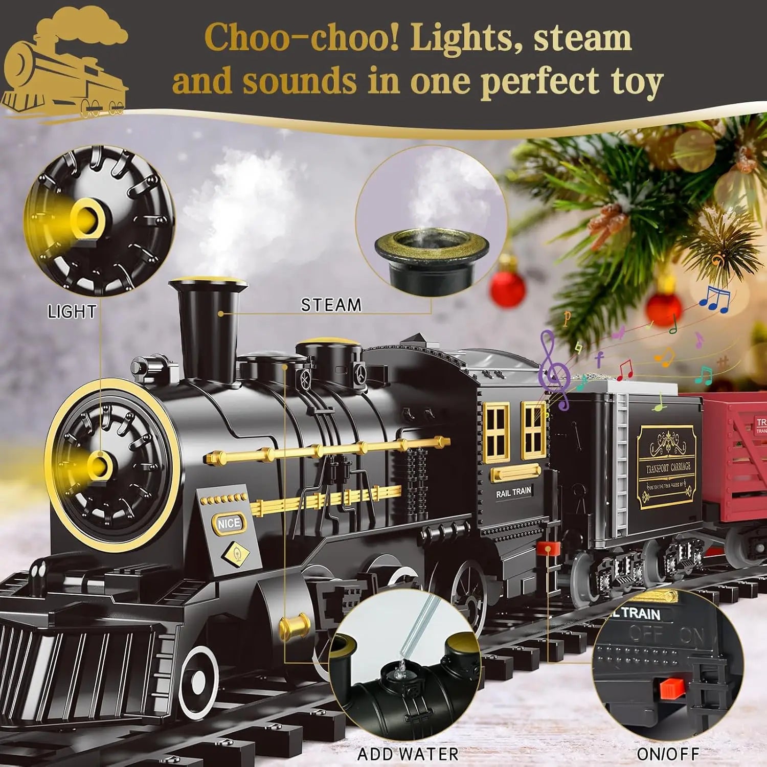 Classic Christmas Train Toy Set with Lights and Sound Effects for Holiday Fun