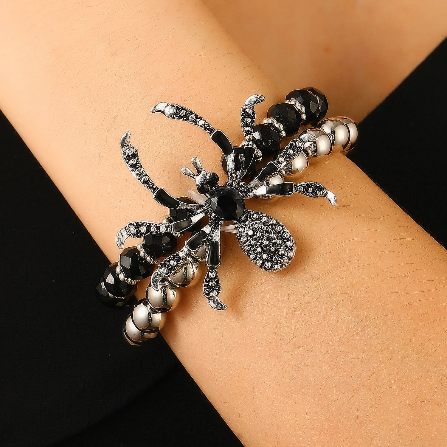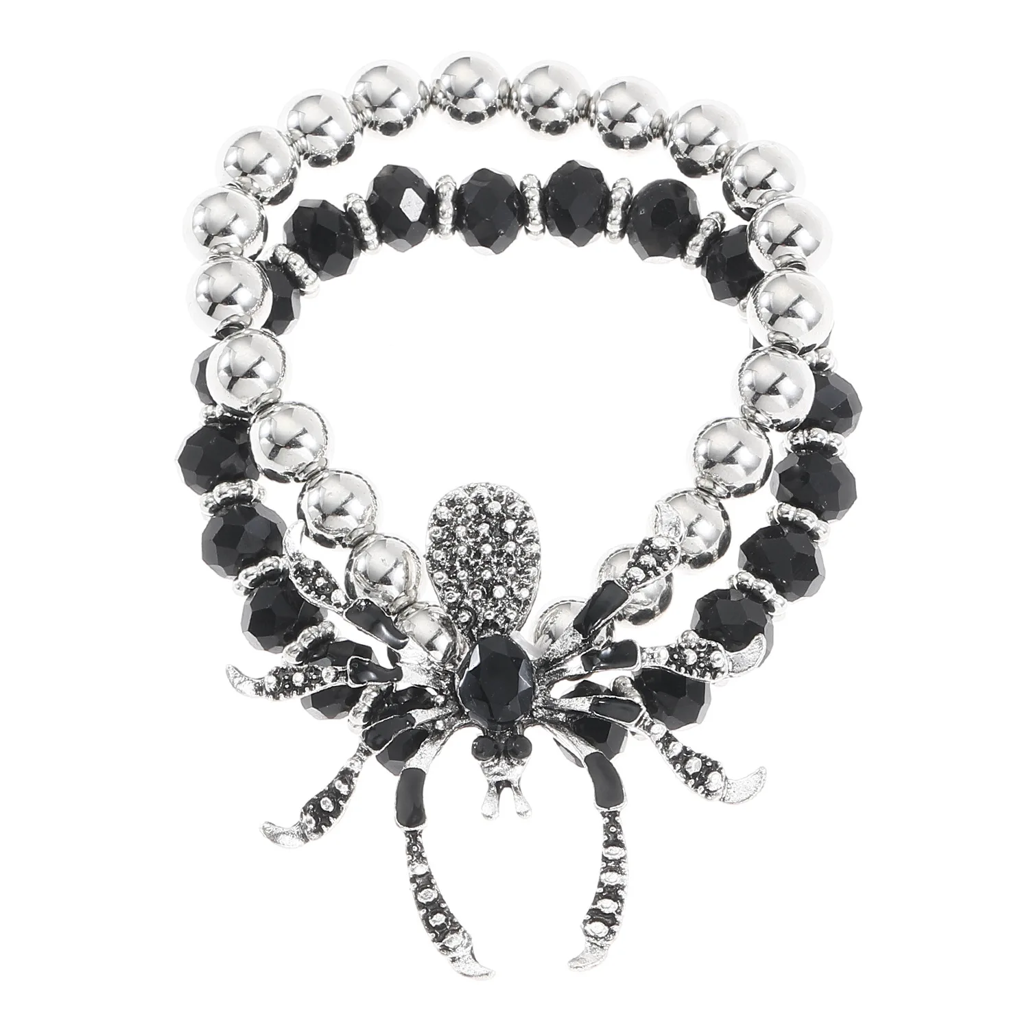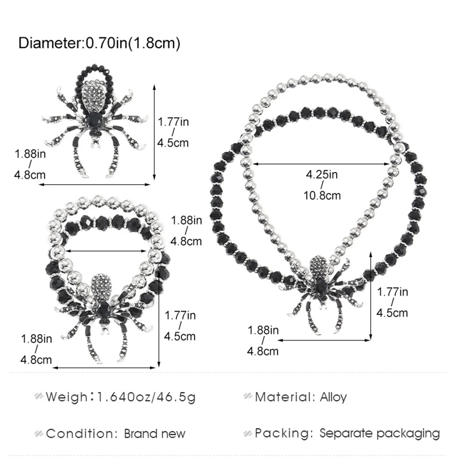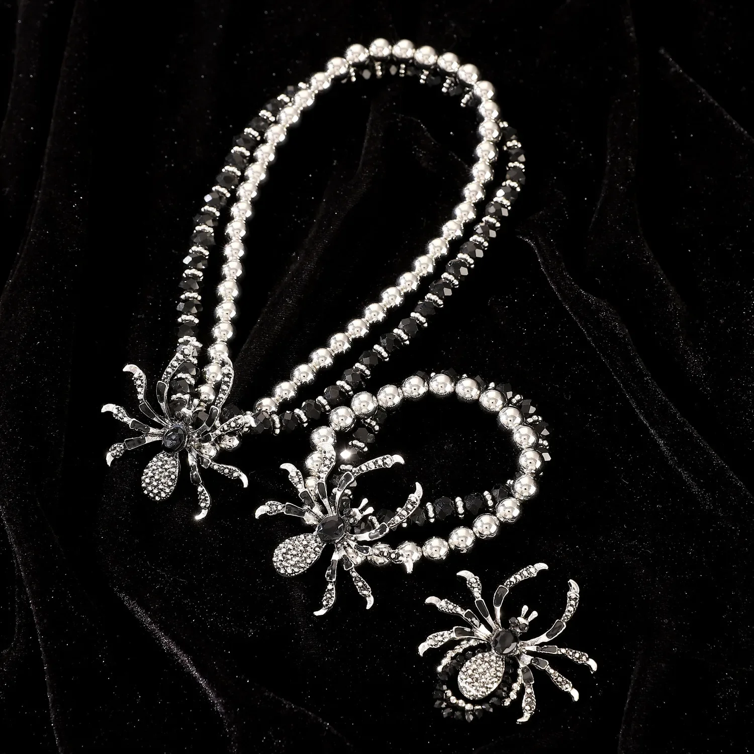 Gothic Dark Spider Necklace Bracelet Ring Set for Women Exaggerated Black Crystal Spider Halloween Accessories Jewelry Set Party