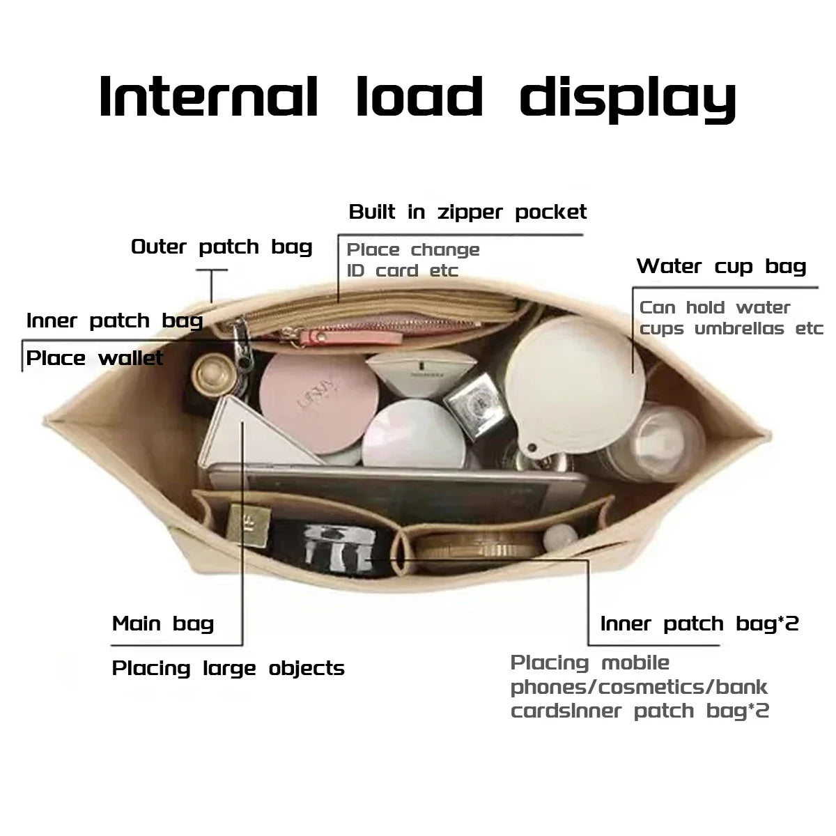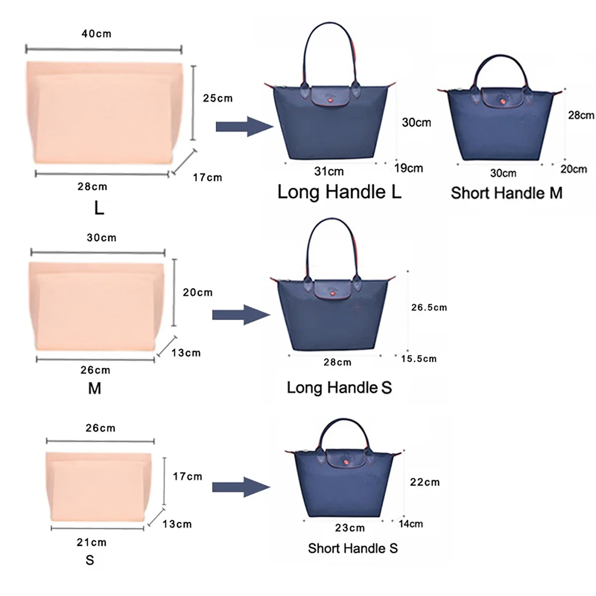 Insert Lined Felt Bag Fits LongChamp Tote Support Lined Storage Cosmetic Bag