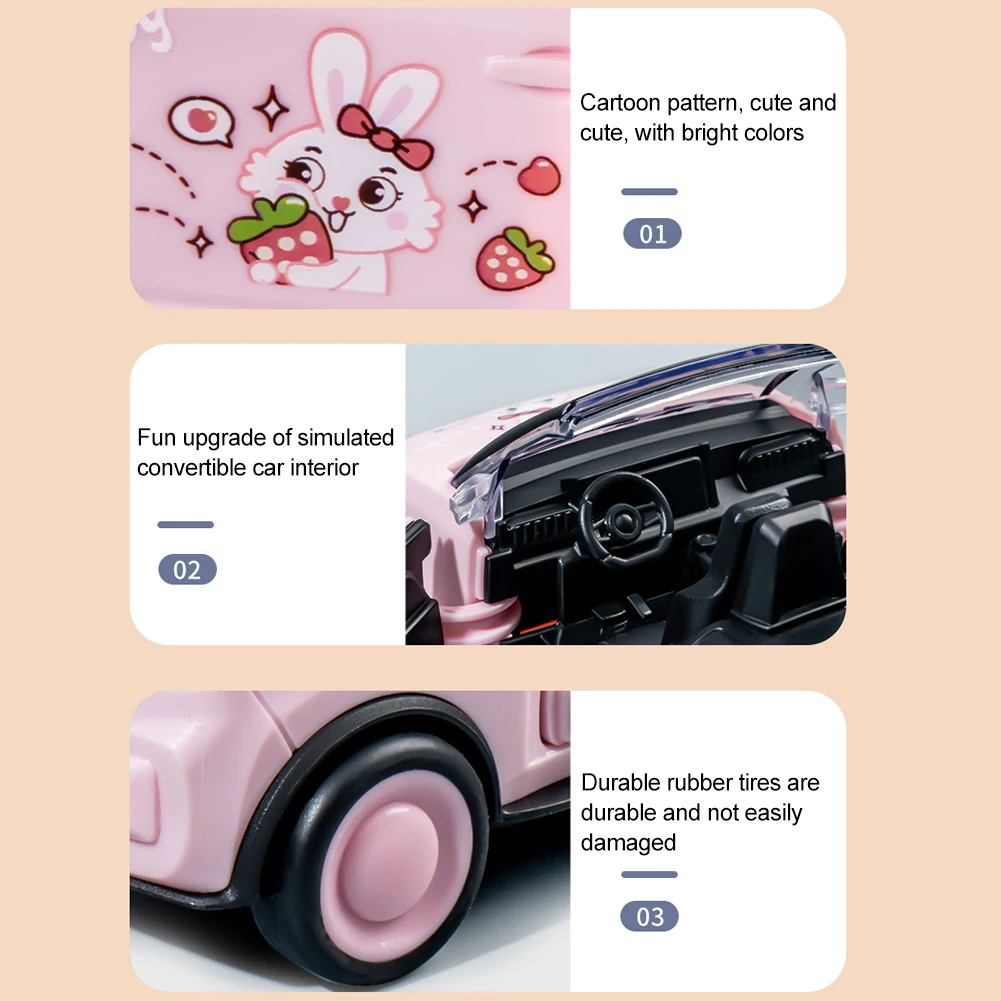 1. Mini Cartoon Convertible Car: Experience the fun with this mini cartoon convertible car toy for children. Its adorable pastel-colored design and realistic appearance make playtime exciting and engaging.