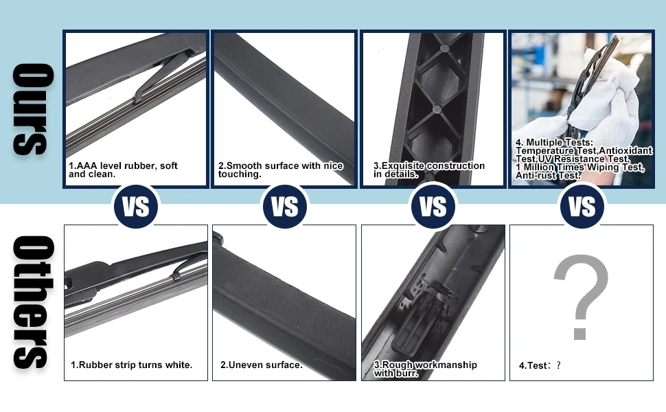 4. [Enhanced Quality] Made of AAA level rubber and strong ABS plastic to enhance longer durability and stable performance. The natural rubber helps reduce noise and friction for clean and smooth wiping. Before provided to our customers, the product has been taken strict tests for good quality in all weather conditions.