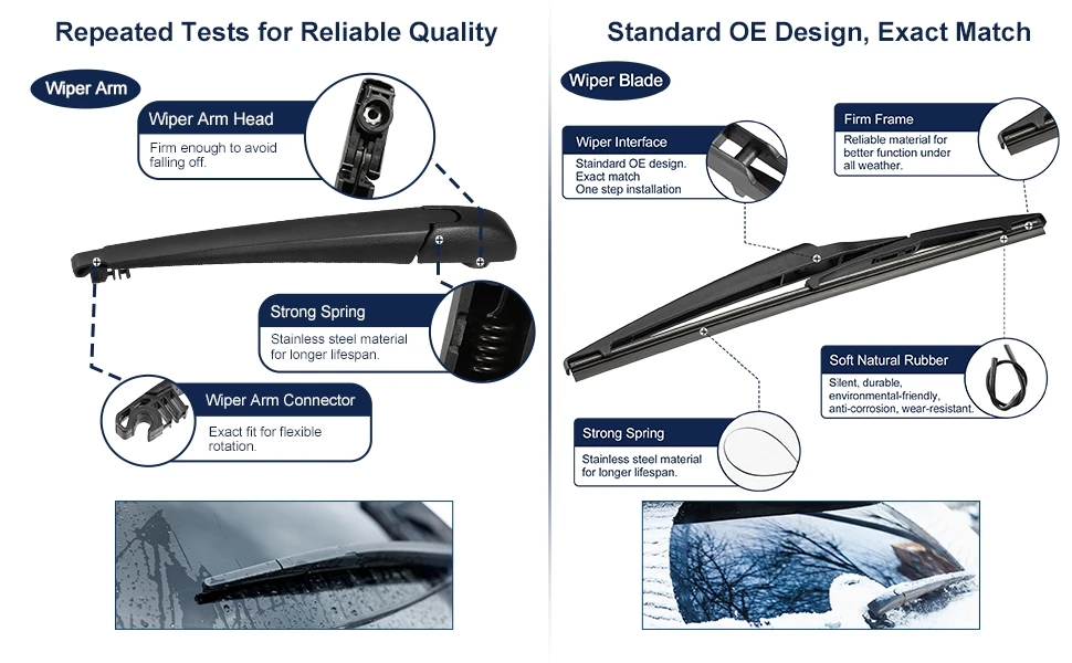 3. [Custom Fit Size] Wiper Blade Size: 350mm / 14", Wiper Blade Arm Size: 310mm / 12". Direct-fit installation without adjustments and meets or exceeds your previous one.
