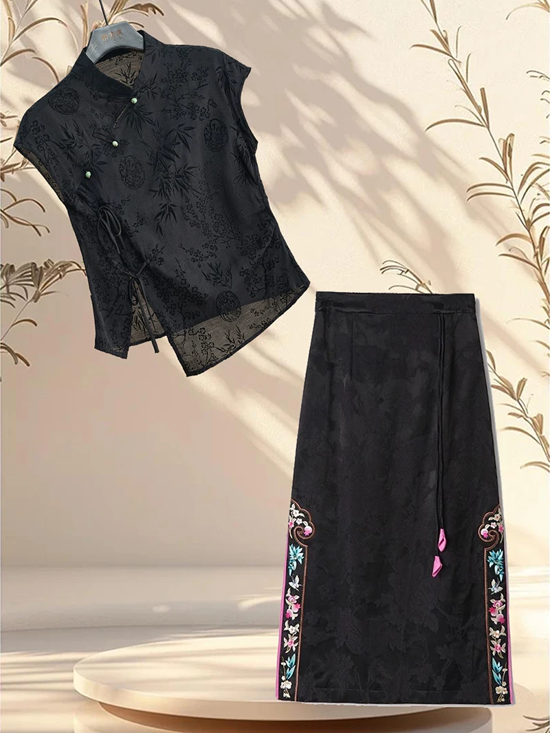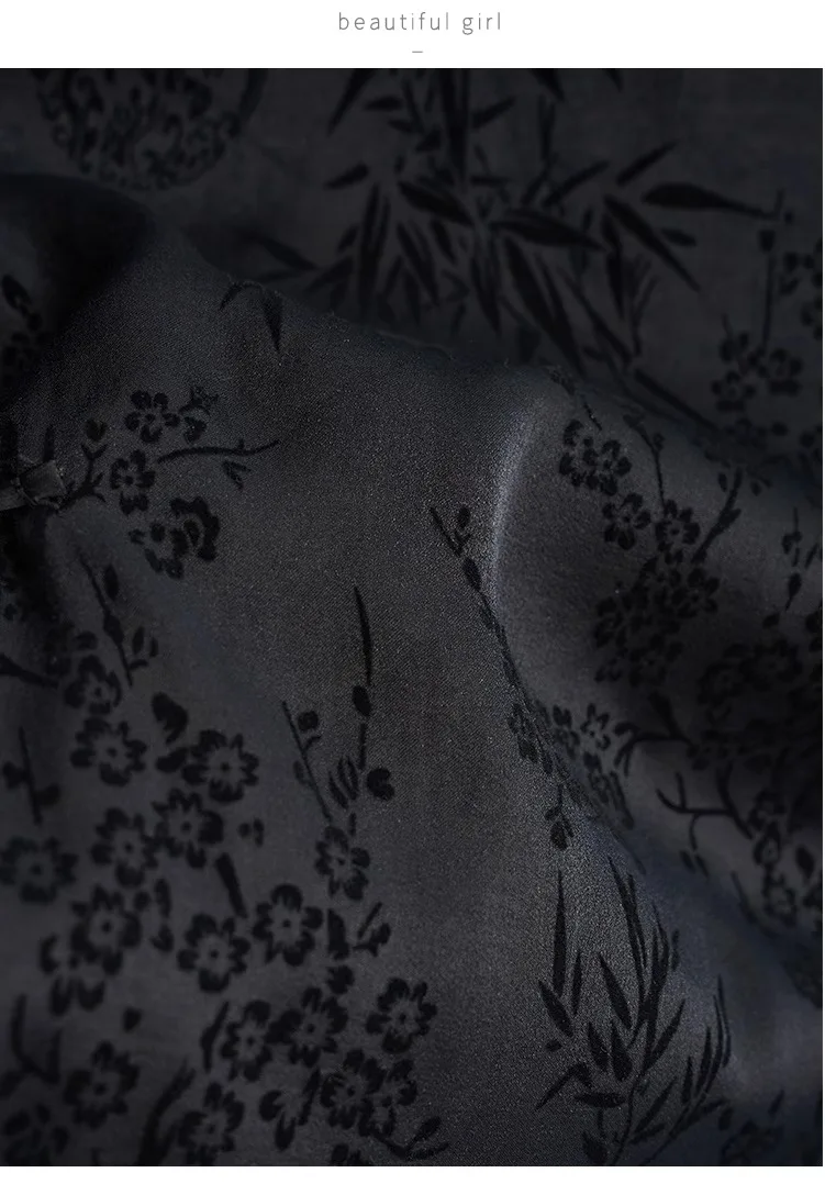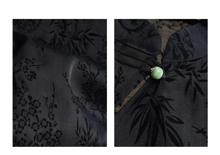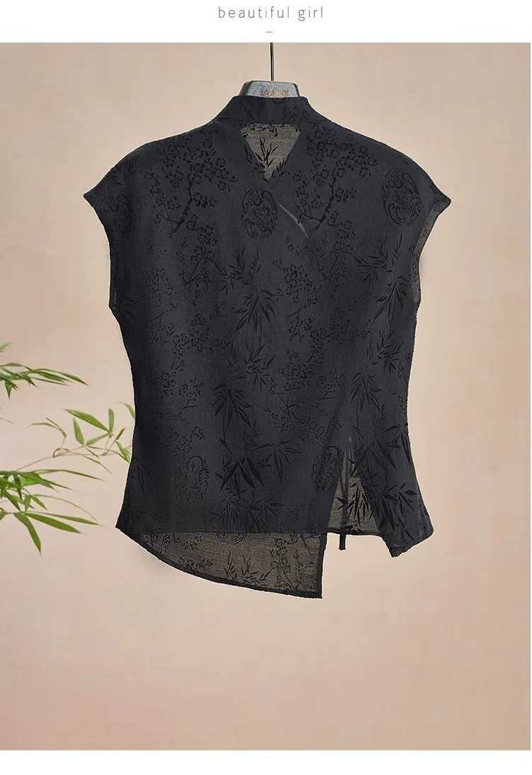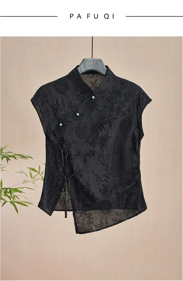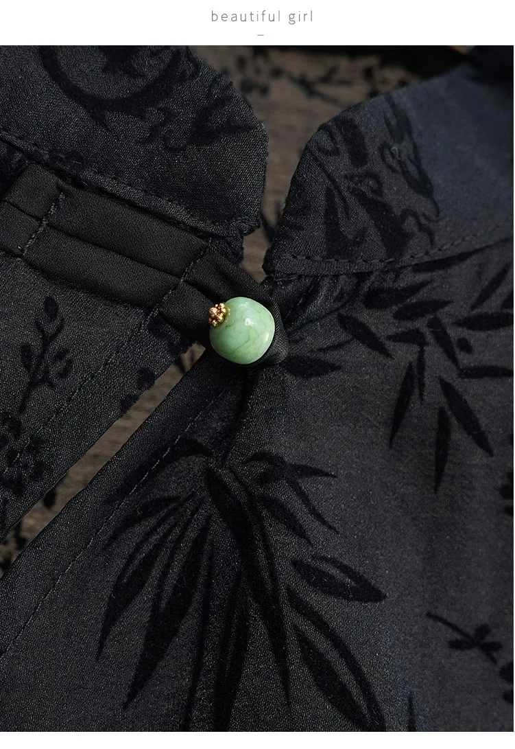 Retro Thin Shirt New Chinese Style Cheongsam Top Black Jacquard Short Sleeve T-shirt Summer Mature Fashion Women's Clothing